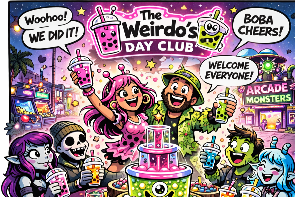 The Weirdo’s Day Club is a Family Friendly day lounge café built for the creatives, the weirdos, and anyone who loves good drinks, good food, and good vibes. We serve boba tea, energizing popping boba, and unique foods in a space that feels more like a daytime club than a coffee shop.